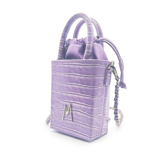 "SMALL LEATHER TOTE" CROCODILE EMBOSSED - LILAC