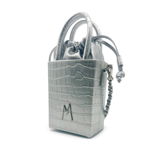 "SMALL LEATHER TOTE" CROCODILE EMBOSSED - STERLING SILVER