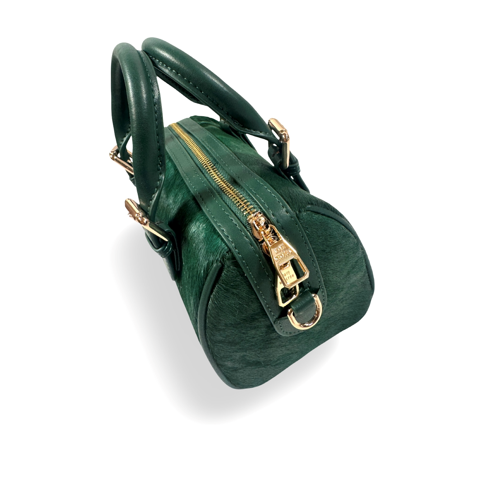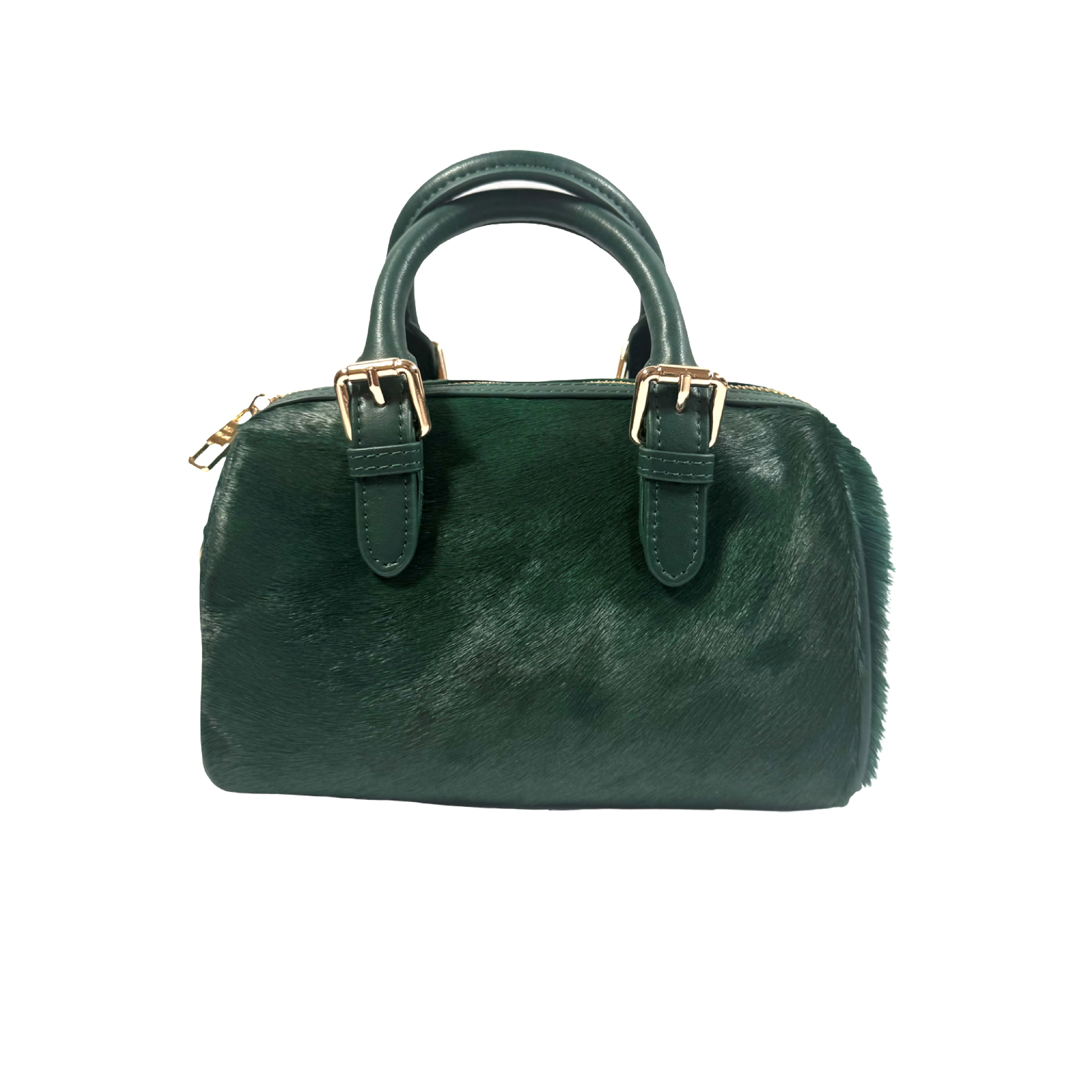 The Bowling Bag is made with high quality Pony hair. Leather handle and zipper stripe placket adds another level of elegance making Maya Winston Bowling Bag a staple for every woman’s wardrobe. A detachable strap switches the style from hand held to a shoulder bag.