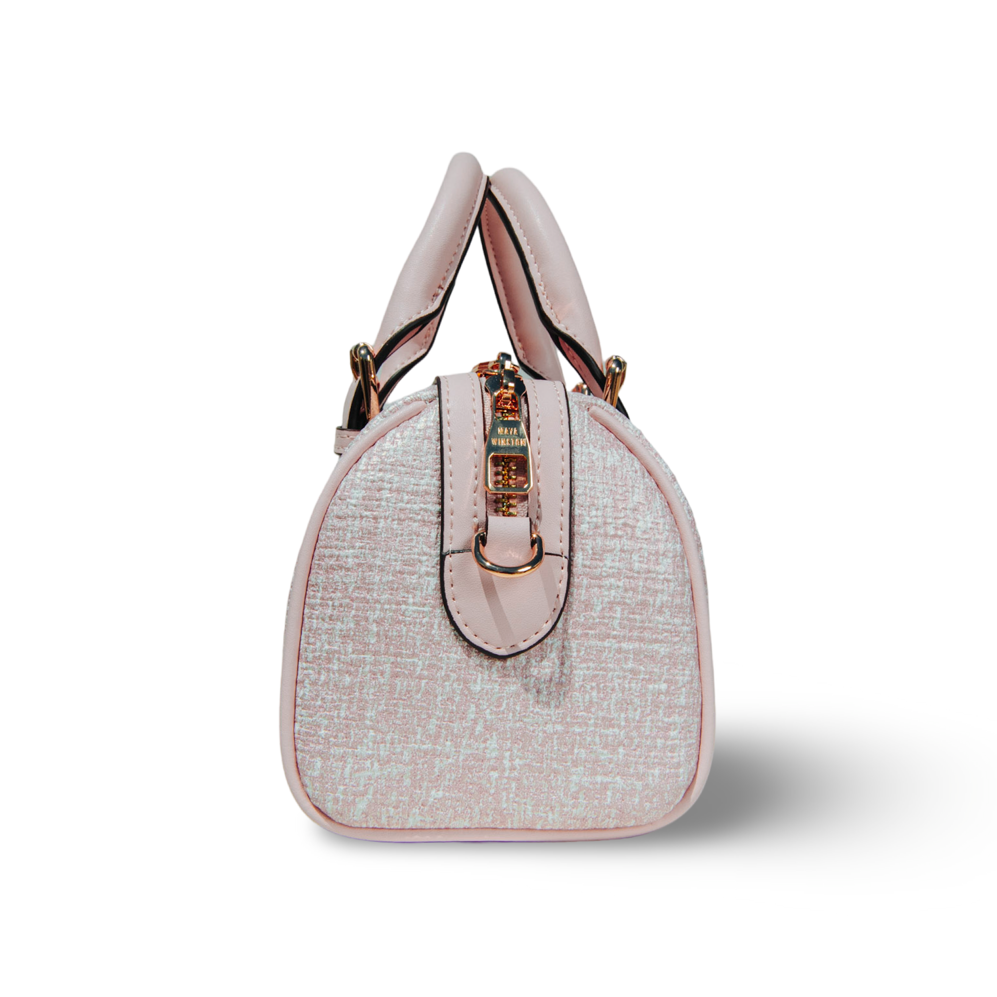 The Bowling Bag is made with a bonded leather technique that gives a modern and sophisticated effect that resembles Tweed. Leather handle and zipper stripe placket adds another level of elegance making Maya Winston Bowling Bag a staple for every woman’s wardrobe. A detachable strap switches the style from hand held to a shoulder bag.