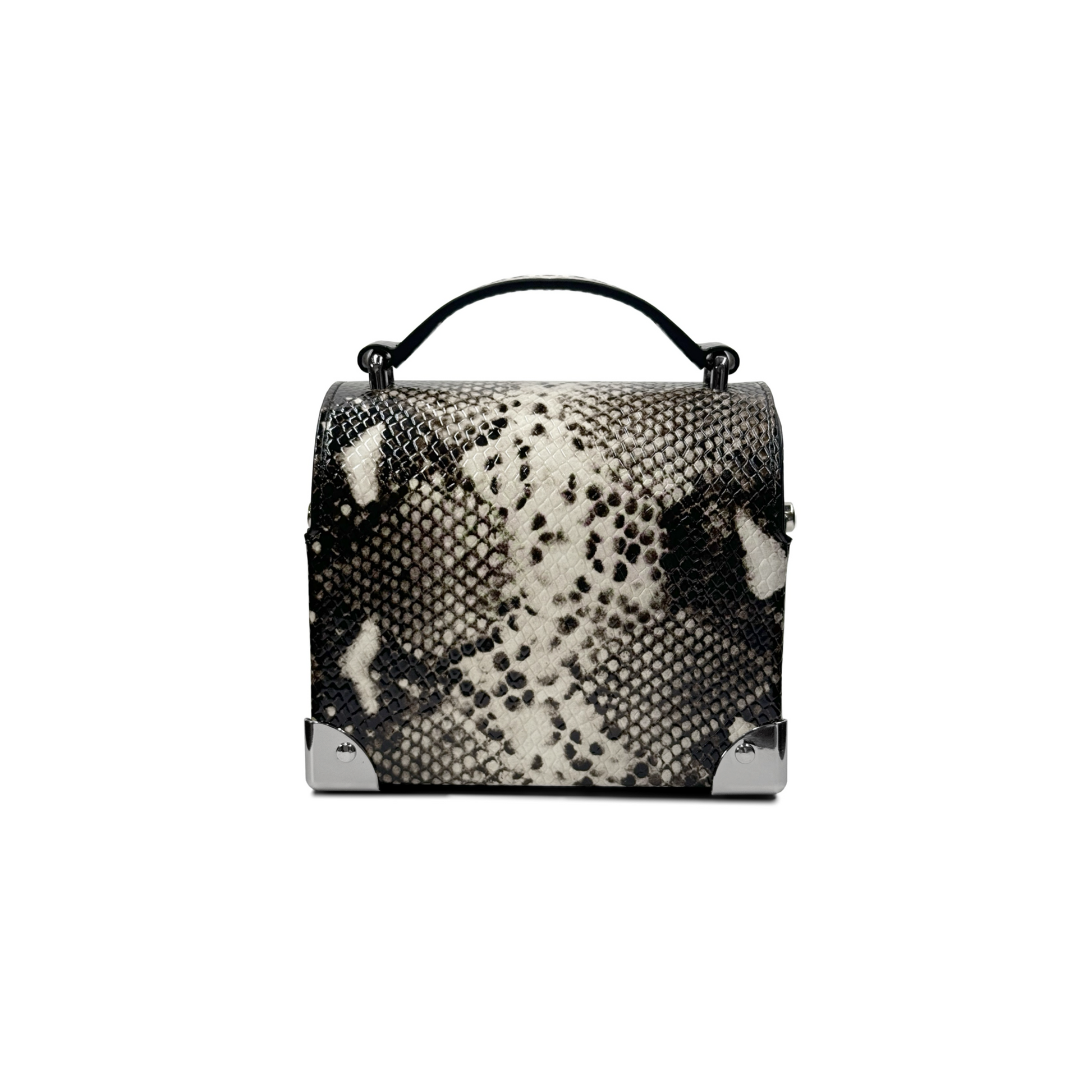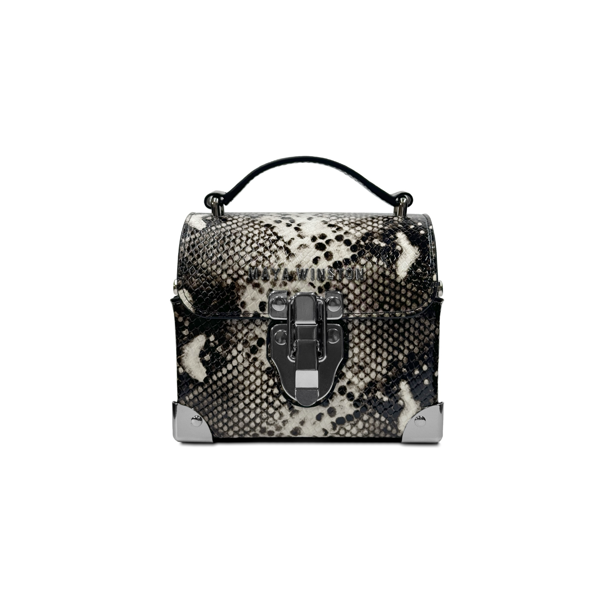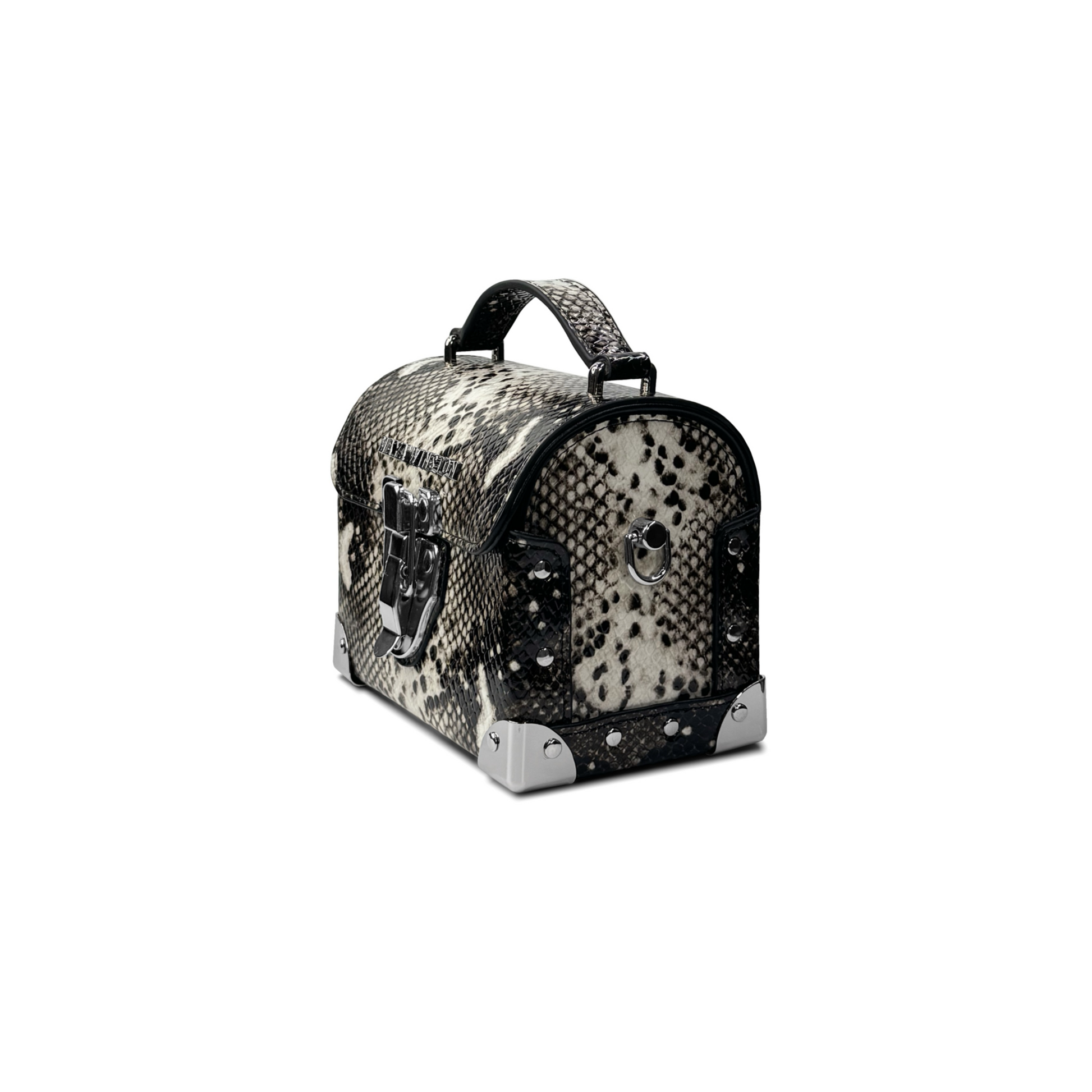 Crafted from high-quality snake embossed cow skin leather, the Dome Trunk features sleek metallic hardware, including a sturdy, vintage style clasp at the front that adds a touch of elegance. Its boxy shape is perfect for maintaining structure.