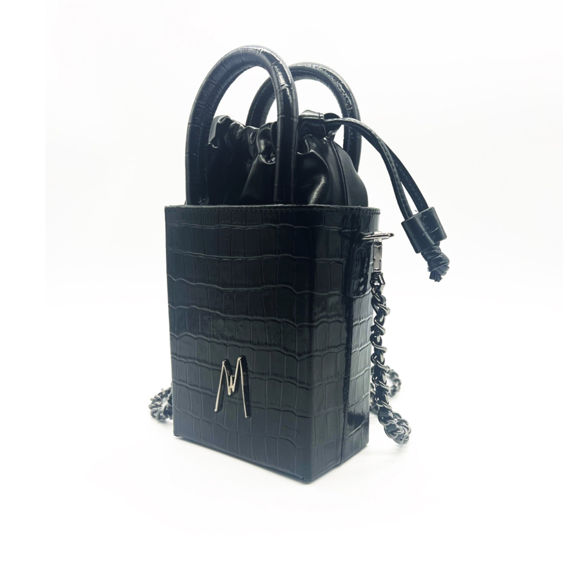 "SMALL LEATHER TOTE" CROCODILE EMBOSSED- BOSEMAN BLACK